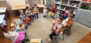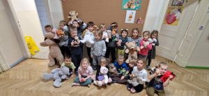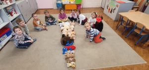 W dniu 25.11.2022 wszystkie dzieci uczestniczyły w urodzinach Pluszowego Misia. Grupy trzy i czterolatków po odczytaniu listu od Misia i zapoznaniu z pluszowymi przyjaciółmi ruszyły w muzyczne tany, a następnie uczestniczyły w zabawach oraz konkurencjach, gdzie zdobywały nagrody.