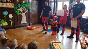 Dnia 22 marca nasze przedszkolaki uczestniczyły w zajęciach z pierwszej pomocy. Poznały zasady bezpieczeństwa nas wodą, udzielania pierwszej pomocy, a co najważniejsze mogły to przećwiczyć. Bardzo dziękujemy Wodnej Służbie Ratowniczej za przeprowadzenie zajęć w naszym przedszkolu.