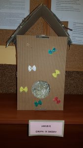 Celem konkursu „Eko karmnik” było: kształcenie postaw proekologicznych, uwrażliwienie dzieci na dokarmianie ptaków zimą oraz rozwijanie wyobraźni i zdolności manualnych. Wpłynęło 5 prac konkursowych. Wszystkie karmniki wykonane były z rzeczy przeznaczonych do recyklingu, a więc spełniły najważniejszy punkt regulaminu. Bardzo dziękujemy dzieciom i ich rodzicom za pomysłowe i ciekawe karmniki.